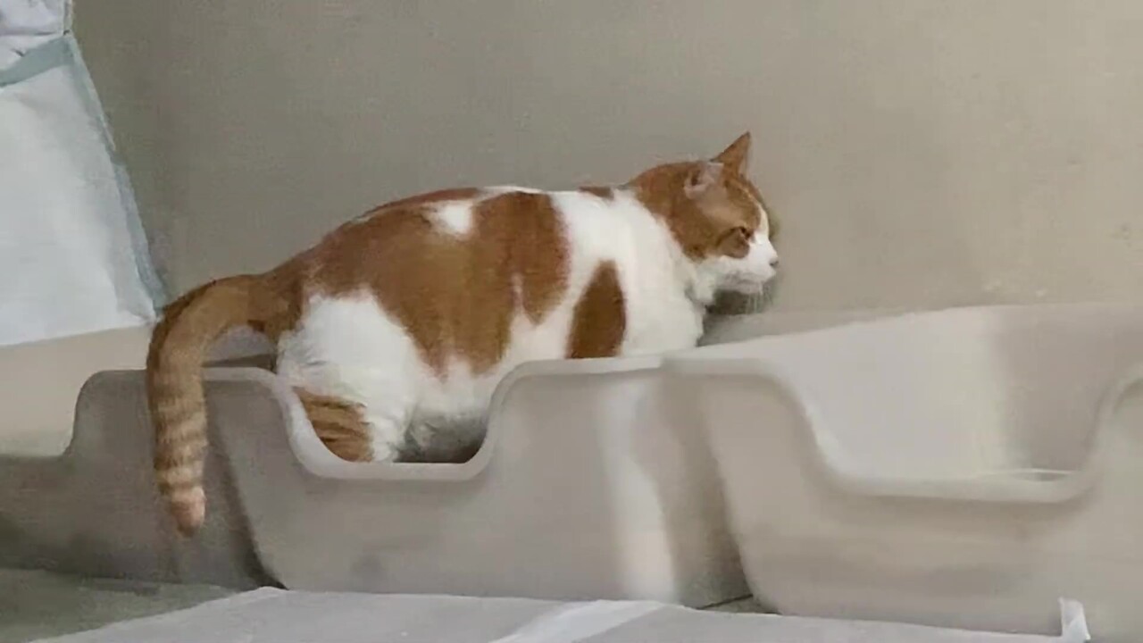 あわててオムツを買ってきて装着してみたが、動き回って全然ダメ。てか、そもそも巨漢用のサイズがない。本人もイヤイヤで、犬歯が残っているからいつガブリとやられるかヒヤヒヤしながらの装着。。結局断念。